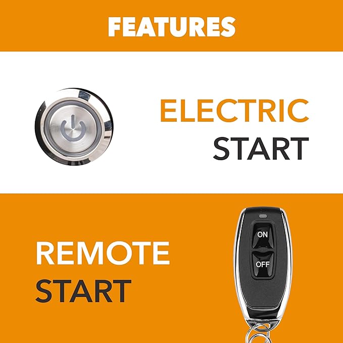 - 【2-Way Start】This generator offers versatile 2-way starting options: remote start for effortless activation from a distance, push-button start for quick operation, and a reliable recoil start for when electricity isn't available. Designed for convenience and dependable power anytime, anywhere. The push start and remote will require 1 unit of 12V battry.