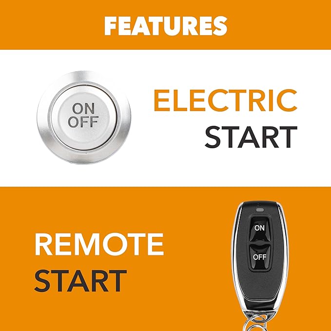 - 【2-Way Start】This generator offers versatile 2-way starting options: remote start for effortless activation from a distance, push-button start for quick operation, and a reliable recoil start for when electricity isn't available. Designed for convenience and dependable power anytime, anywhere. The push start and remote will require 1 unit of 12V battry.