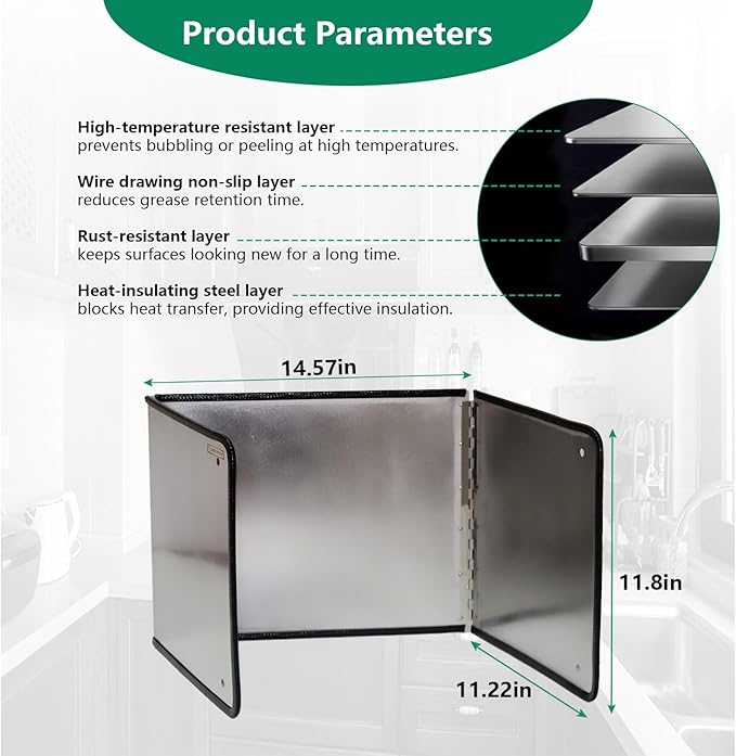 - Preventing Oil Splatter:The splash guard effectively prevents kitchen grease splatters, protects the stove and its surroundings, and reduces household labor time.2 Pieces 2 Sided Splatter Guards can be adjusted according to the size of the stove