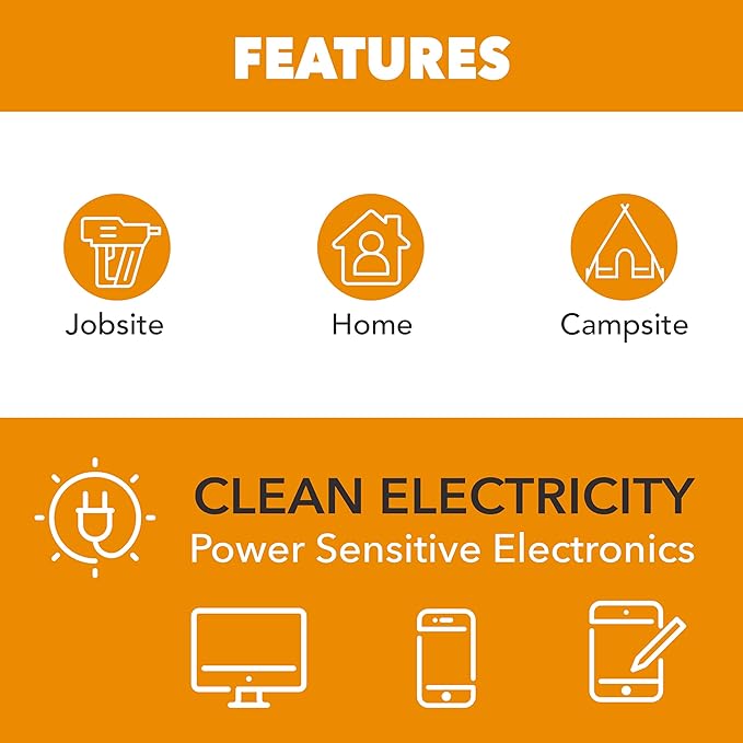 - 【Parallel Capability & Duplex Plug】Connect this generator to another compatible unit to double your power output, making it perfect for larger energy demands and versatile applications. The generator features a duplex plug that supports all electronic device plugs, providing versatitle and stable connectivity for your power needs.