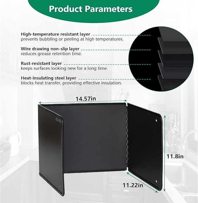 - Preventing Oil Splatter:The splash guard effectively prevents kitchen grease splatters, protects the stove and its surroundings, and reduces household labor time.2 Pieces 2 Sided Splatter Guards can be adjusted according to the size of the stove