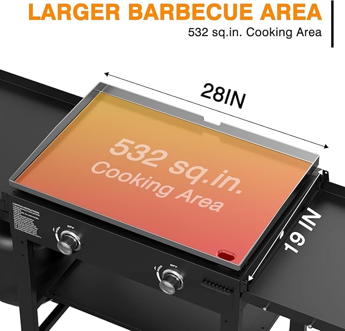 - ๐๐ฉ๐๐๐ข๐จ๐ฎ๐ฌ ๐๐จ๐จ๐ค๐ข๐ง๐ ๐๐ฉ๐๐๐-This propane griddle an impressive 573 square inches of cooking space, perfect for preparing multiple ingredients at once, ideal for family gatherings and outdoor parties.