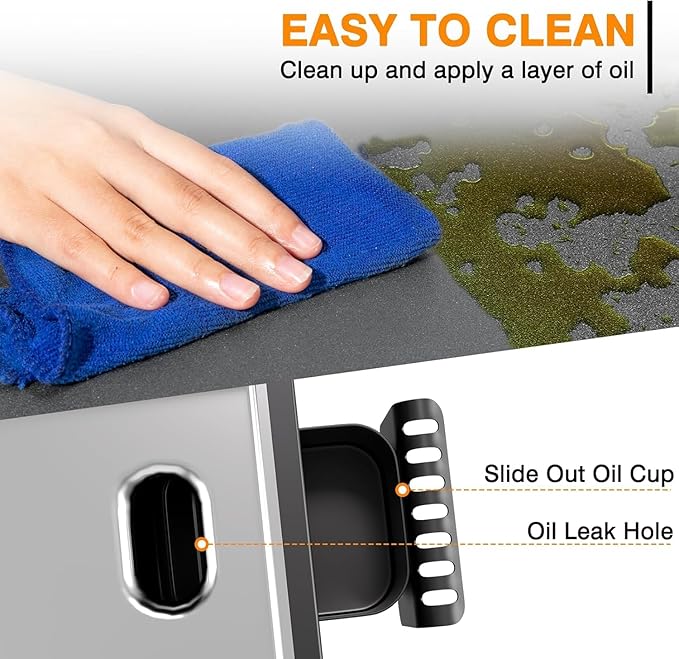 - ๐๐๐ฌ๐ฒ ๐๐ฅ๐๐๐ง๐ข๐ง๐ ๐๐ง๐ ๐๐๐ข๐ง๐ญ๐๐ง๐๐ง๐๐-For easy cleaning, simply brush the cooking surface with a griddle brush and wipe down the exterior with a cleaning cloth and detergent to keep it in perfect condition. Also, this griddle comes with an oil collection system with removable drip tray.