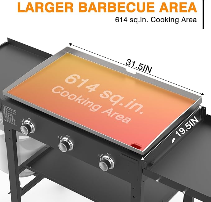 - ๐๐ฉ๐๐๐ข๐จ๐ฎ๐ฌ ๐๐จ๐จ๐ค๐ข๐ง๐ ๐๐ฉ๐๐๐-This propane griddle an impressive 614 square inches of cooking space, perfect for preparing multiple ingredients at once, ideal for family gatherings and outdoor parties.