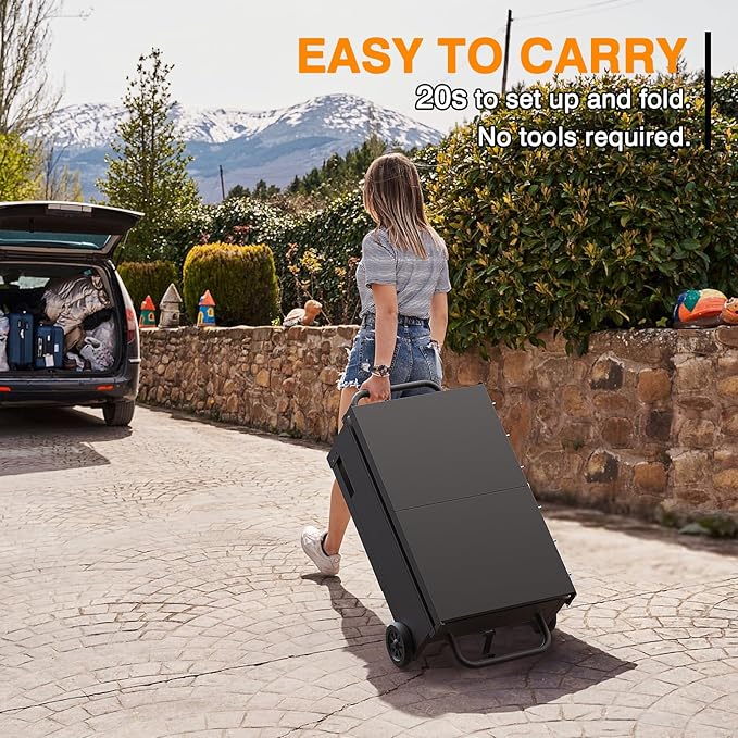 - ๐๐จ๐ซ๐ญ๐๐๐ฅ๐ ๐๐ง๐ ๐๐ฌ๐๐ซ-๐ ๐ซ๐ข๐๐ง๐๐ฅ๐ฒ ๐๐๐ฌ๐ข๐ ๐ง-This grill a foldable design with durable wheels and a convenient handle, allowing outdoor cooking enthusiasts to easily transport the grill to any location.