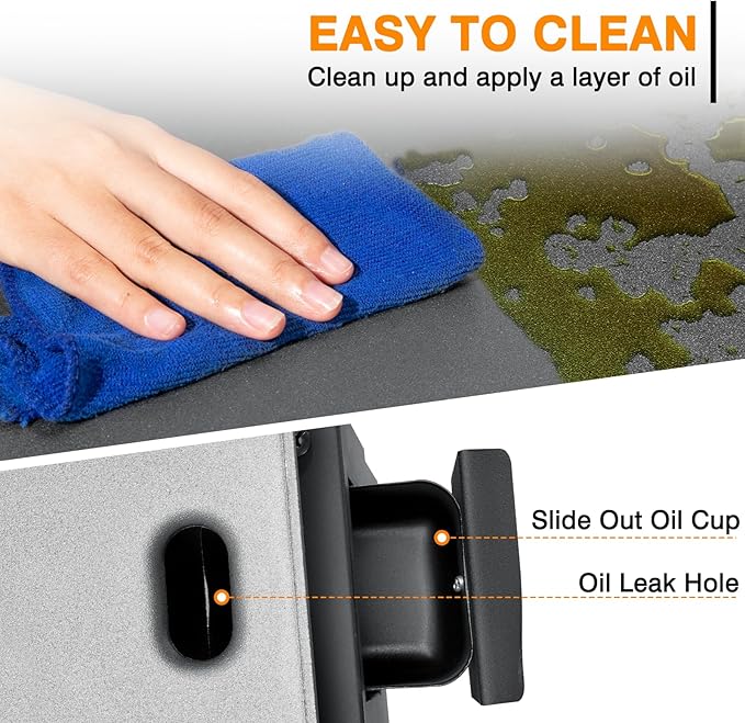 - ๐๐๐ฌ๐ฒ ๐๐ฅ๐๐๐ง๐ข๐ง๐ ๐๐ง๐ ๐๐๐ข๐ง๐ญ๐๐ง๐๐ง๐๐-For easy cleaning, simply brush the cooking surface with a griddle brush and wipe down the exterior with a cleaning cloth and detergent to keep it in perfect condition. Also, this griddle comes with an oil collection system with removable drip tray.