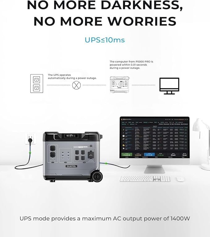 OUKITEL P5000 Pro 3600W Solar Generator with 400W Panel, 5120Wh Solar power station with 5 AC Outlets (5000W Peak), 1800W Fast Charging, Emergency Battery Backup for Home, Camping & RVs