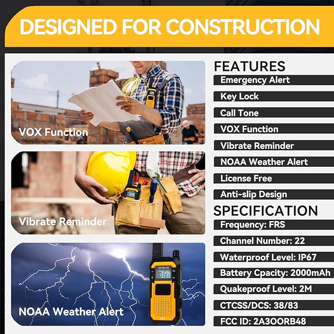 - STABLE AND CLEAR - RB48 two way radios support up to 300,000 sq.ft./25 floors of long-distance signal range; making communication more convenient and efficient; FCC ID:2A3OORB48
