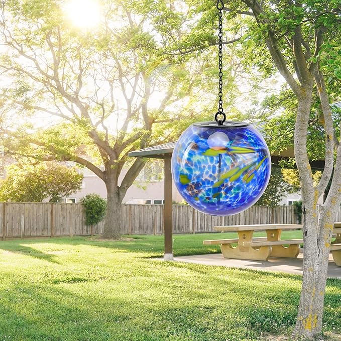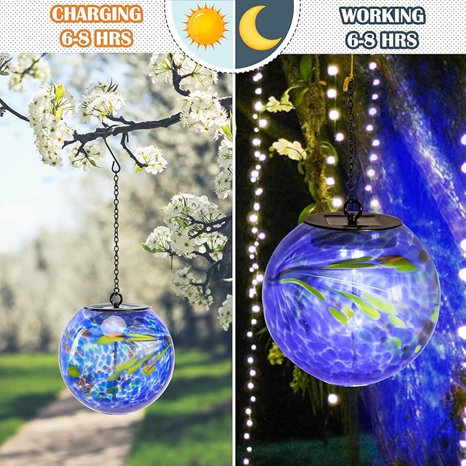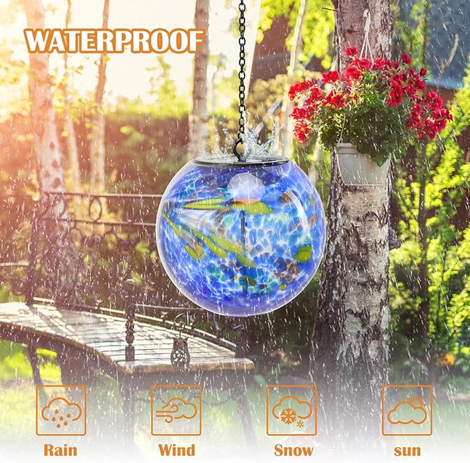 Solar Hanging Lanterns Outdoor Solar Glaze Glass Lantern Globe Hanging Outdoor Lights for Garden Yard Home Decoration Blue