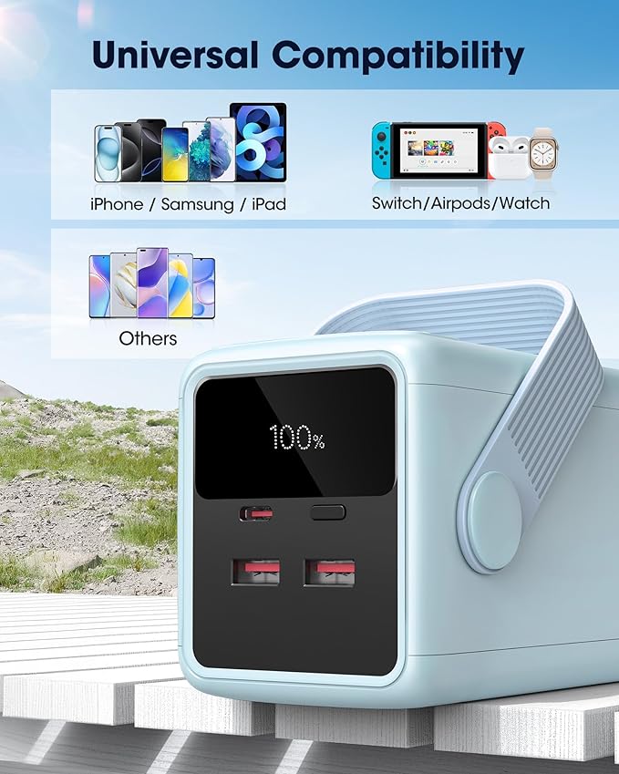 - LED Digital Display and Portable Strap Portable Charger -- The top of the cell phone charger power bank is equipped with a soft, portable handle, making it easy to carry and convenient to stow in your backpack or hold in hand without any burden during outdoor use. Portable battery pack also features a precise LED digital display that shows the remaining power percentage in real time, ensuring you have peace of mind while charging on the go