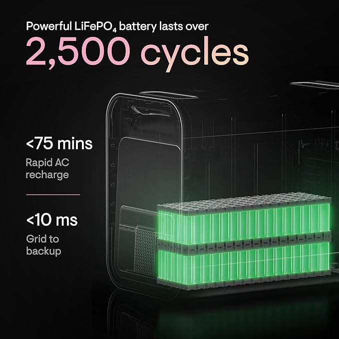 - ALL-WEATHER READY: Designed for safe outdoor use with a rugged build and wide temperature tolerance (-4°F to 122°F/-20°C to 50°C), this solar generator operates reliably in light rain, snow, sun, or indoors. Switch from grid to backup in less than 10 ms.
