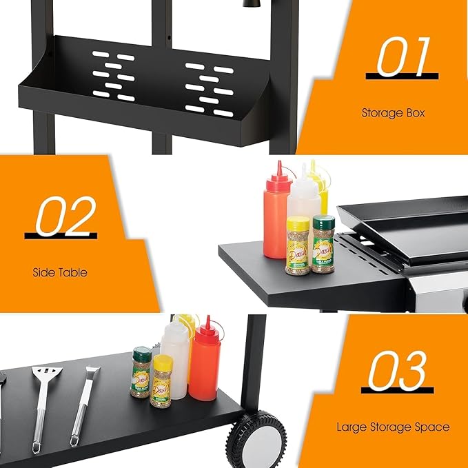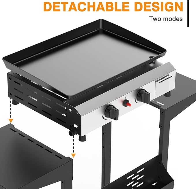 - ๐๐๐ฌ๐ฒ ๐ญ๐จ ๐๐ฅ๐๐๐ง-The removable griddle top and slide-out grease cups simplify cleanup, ensuring that your outdoor cooking experience is enjoyable and free from the hassle of complicated maintenance.
