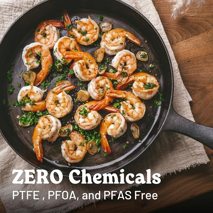 - Chemical-Free: This large cast iron skillet is free from PFAS and chemical coatings, enhancing the natural nonstick seasoning over time, making it a safe, easy-to-clean option for uncoated iron pan.