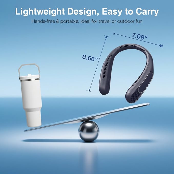 - 【Sleek & Trendy Design, Stylish & Practical】The portable fan for travel features 360-degree surrounding airflow for cooling, a stylish appearance, and a hands-free design that’s easy to wear around your neck, perfect for trips. Personal fans for your neck are essentials for staying cool during outdoor activities like gardening, traveling, hiking, biking, and concerts. It’s also ideal for all rooms use, keeping you comfortable while working, exercising, cooking, or enduring hot environments