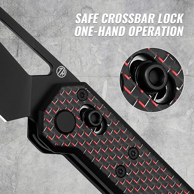 - Smooth & Secure Crossbar Lock: Designed for safety and convenience, the reliable crossbar lock keeps the blade firmly in place, preventing accidental closure. Paired with a thumb hole for effortless, one-handed deployment, this mechanism ensures quick access and steady control during every use.