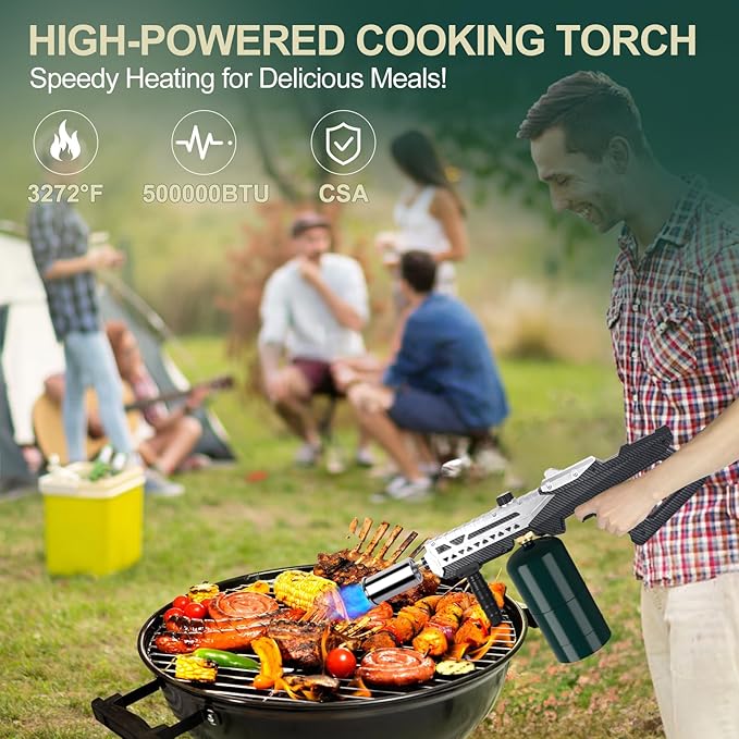 - 💥Powerful & Efficient: Our advanced cooking torch offers unrivalled performance in and out of the kitchen, with a maximum temperature of 1800°C/3272°F and generating up to 500,000 BTUs of high heat, it's the best of the best in cooking tools. Featuring a state-of-the-art piezoelectric ignition for quick and easy ignition and fast, even roasting, the high heat flamethrower is the ultimate time-saving, efficient tool that every cooking enthusiast should own.