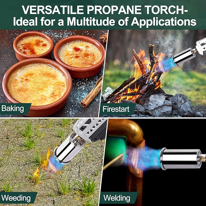 - 💥Multifunctional Use: Our multifunctional welding torch can meet both daily use and professional needs, it is the perfect tool for activities such as barbecuing, fire building, camping, weed removal, DIY projects and welding. Due to the wide range of functions of this culinary torch, it is a great gift for parents, friends, husband or professional chef, it will surely be well received and widely used.