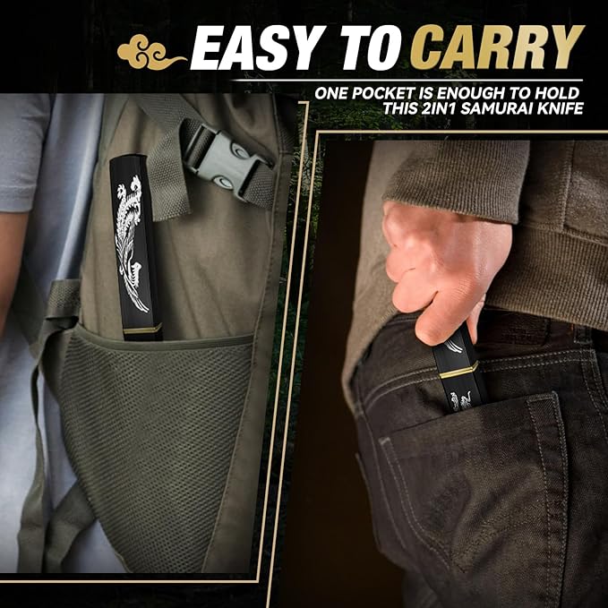 - Ultimate Gift for Outdoorsmen--This versatile survival knife blends craftsmanship and function in a striking design inspired by samurai swords. A thoughtful gift for hunters, adventurers, or collectors who appreciate high-performance knives built for the wild