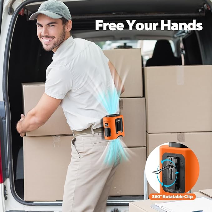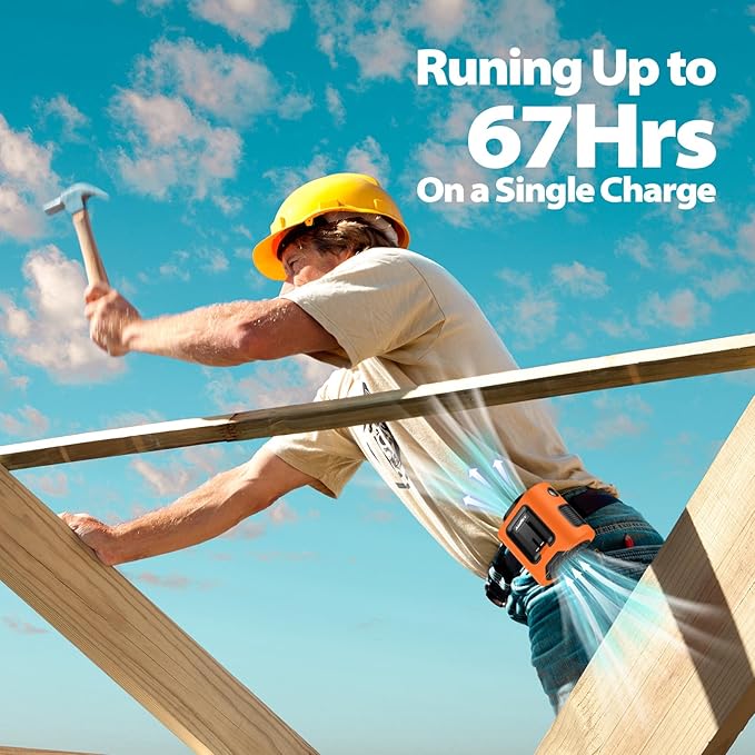 - 67 Hours Long Battery Life: This portable waist fan packs a rechargeable 14500mAh battery, delivering 6 to 67 hours cooling on a single charge. Fully recharges just in 6.5 hours, Perfect for work, job sites, camping, fishing, hiking, or travel