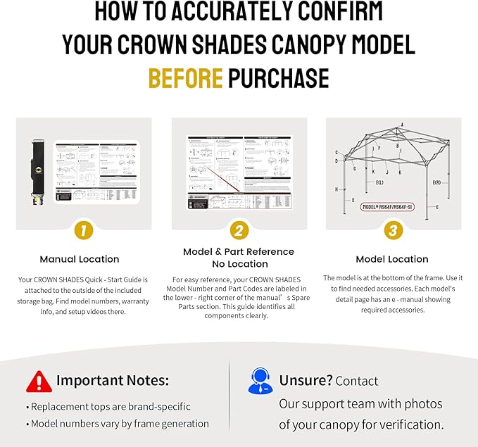 - EASY INSTALL & PORTABLE–No-fuss setup with Fast Clips and velcro straps. Lightweight replacement top (no frame) stores easily. Check your Crown Shades model (on cover bag) to confirm fit before buying!