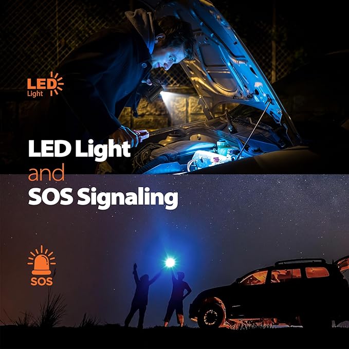 - Emergency Power Source: Features a 5V/2A input/output port of this battery fan, free charge your phone, tablet, or other devices, The LED light can be set for steady beam or SOS signaling for emergency, and the smart display help you keep track of remaining power and timly recharge