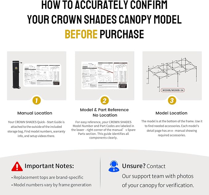 - EASY INSTALL & PORTABLE–No-fuss setup with Fast Clips and velcro straps. Lightweight replacement top (no frame) stores easily. Check your Crown Shades model (on cover bag) to confirm fit before buying!