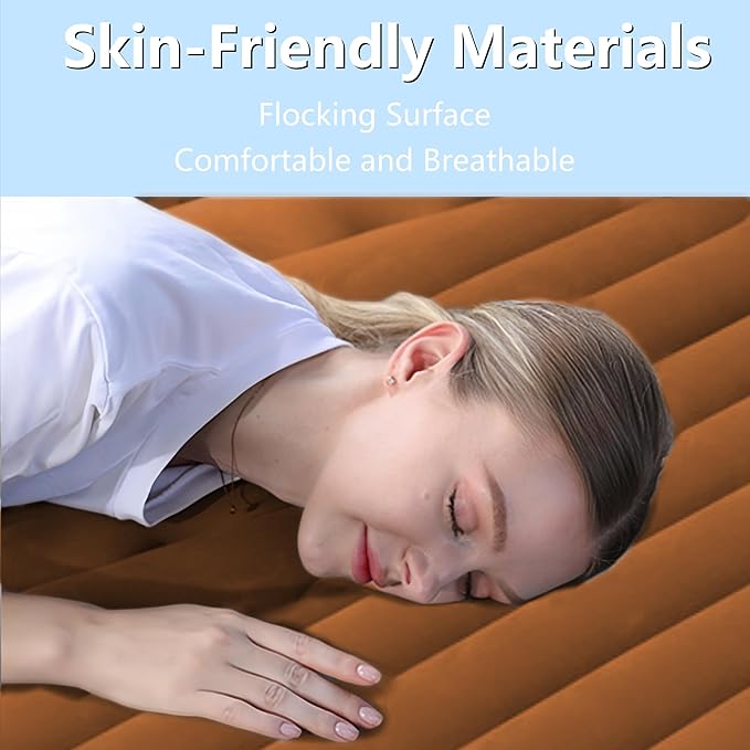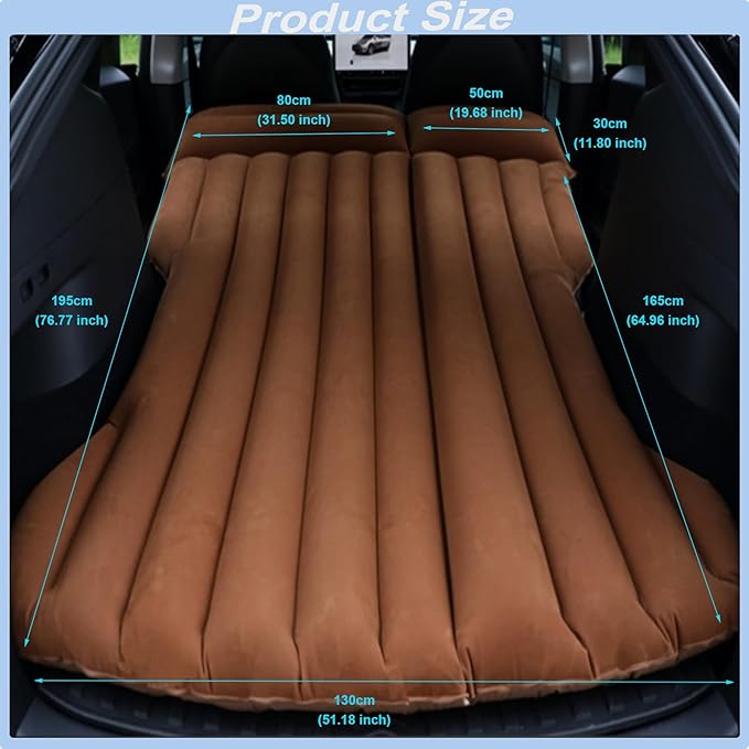 - COMFORTABLE & MOISTURE PROOF CAR AIR MATTRESS : This air mattress camping bed for car is made of skin-friendly flocking and thicked PVC waterproof material, which is cold-resistant to -25°C, soft to the touch, non-toxic, and odorless, more comfortable and durable. Moreover, the design of this car air mattress for camping conforms to ergonomics and effectively shock-absorbing, allowing your family and friends to rest well in the back seat or trunk on the traveling