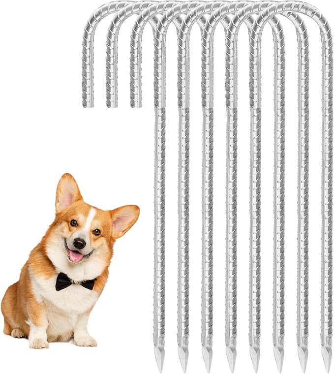 - 【12 Inches Rebar Stakes】The Metal Stake Sold In Bundles Of 8 Pieces.12 Inches Length From Tip To Hook,9/40Inch (6mm) Diameter J Stakes.The Hook Is 2.76" And Spacing Is 1.57",Have A Cutting-Edge Bottom Design Pefect for Feed Garden,Camping Tents,Greenhouse,Canopies,Gazebos And Giant Inflatables Etc To Conquer Any Terrain With Confidence! The Surface of The Ground Stakes Has A Galvanized Coating, Letting You Say Goodbye To The Worry Of Rust And Ensuring Repeated And Long-Term Use!