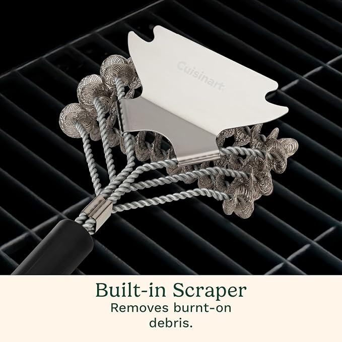 Cuisinart Triple Coil Brush, 17” Stainless Steel Grill Brush with Wide Scraper for All Grates, Bristle Free Grilling Accessory for Worry Free Cleaning, Perfect for BBQs, Cookout & Tailgate Cleaning