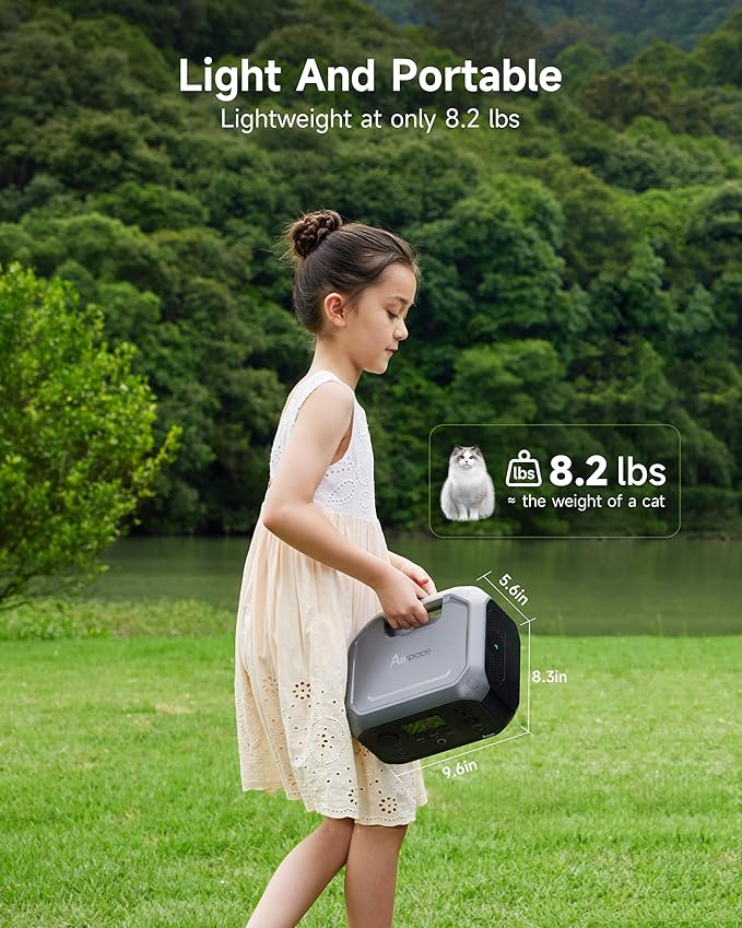- LIGHT AND PORTABLE - Weighing just 8.2 lbs and featuring a one-piece aluminum handle, the Ampace Andes 300 is incredibly easy to carry. It's a reliable choice for outdoor camping, road trips, RV adventures, and home backup. Power your life!