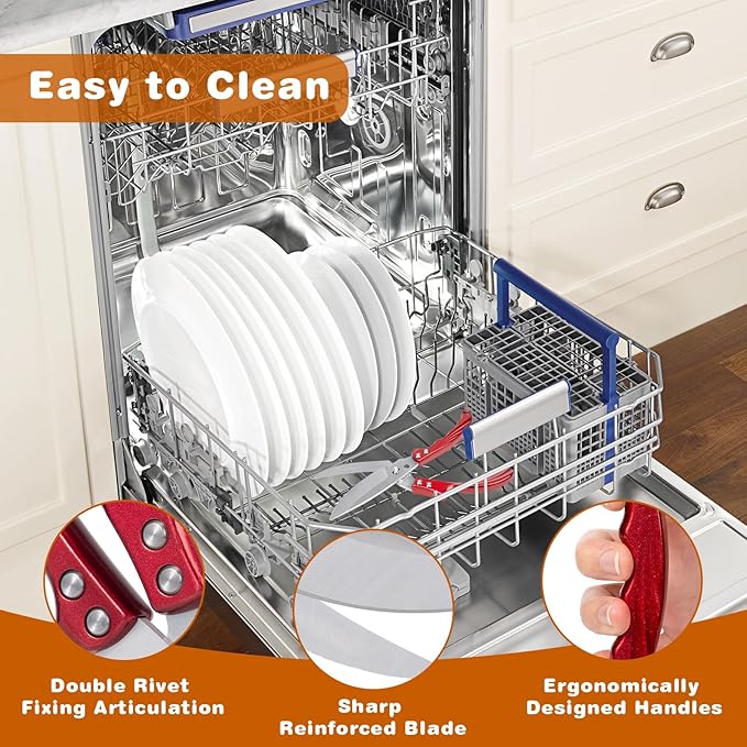 - Easy to Clean & Dishwasher Safe – Designed for convenience, the stainless steel kitchen scissors are dishwasher safe, making cleanup effortless. The rust-resistant, corrosion-proof material ensures they stay sharp and in excellent condition for years. Whether washing by hand or in the dishwasher, these shears maintain their pristine quality, making them an essential, low-maintenance tool for any kitchen.