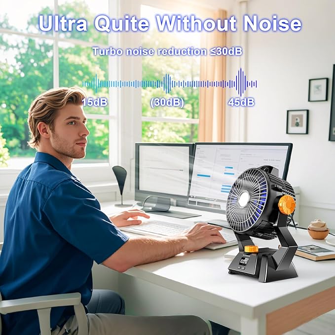 - 【 Quiet but Powerful Wind 】 What sets this camping fan rechargeable apart is the lastest brushless motors and high-performance ultra-thin fan blades which can provides ultra-strong airflow at the lowest noise ( <30db). With stepless speed settings, it's customizable for different preferences and weather conditions. It’s an ok fan for camping and emergency use after a Hurricane and thunderstorm season or other natural disaster.