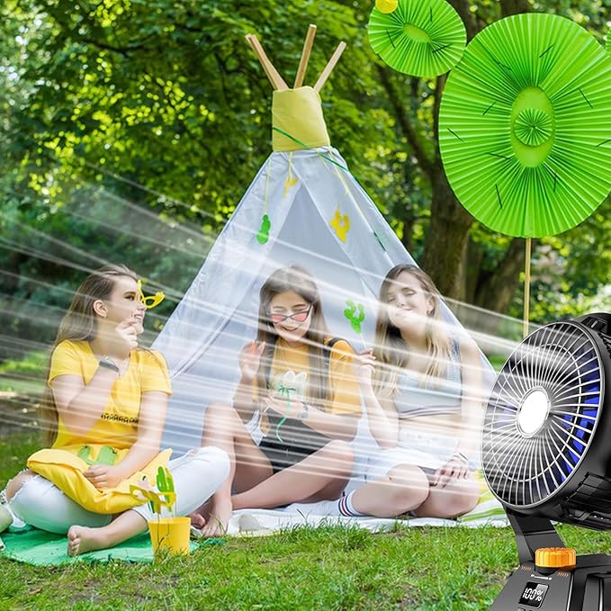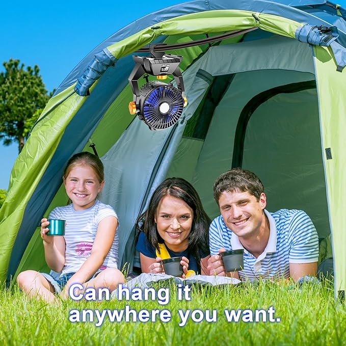 - 【 New Cooling Design Portable Fan 】 Different from other camping fans, this portable camping fan will be a game changer for your outdoor adventures, which can work continuously for all day long to keep you cool in this hot summer. This tent fan is a must-have for your camping trips. It offers the perfect blend of functionality and convenience to enhance the overall outdoor experience. Highly recommended for fellow campers who are looking for a reliable and versatile camping companion.