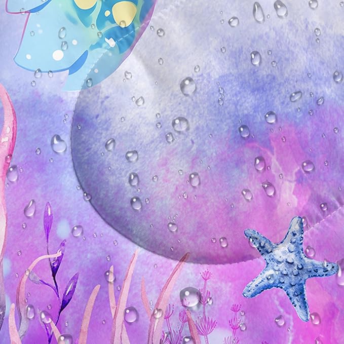 - 【Design】This ocean-themed sleeping bag features a purple turtle pattern with waterweed and jellyfish elements, and the vibrant design adds fun to your outdoor journey.The zipper and waterproof fabric design keep you warm even on wet nights,so you can have a great night!