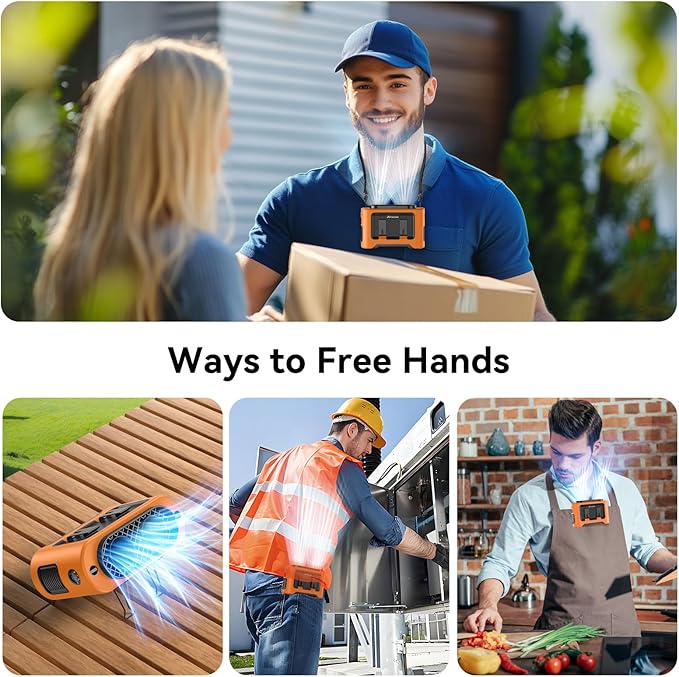 - Versatile for All: More than just a waist fan, this hands-free travel fan comes with a detachable lanyard to wear as a neck fan and a foldable stand to use as a desk fan. Perfect for staying cool at sports events, concerts, golf courses, workouts, or theme park visits. With its rugged and powerful design, this rechargeable work fan makes a great gift for a husband, father, boyfriend, grandfather, or any man who needs reliable cooling in the summer heat