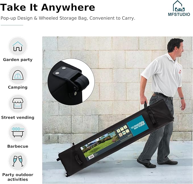 - Versatile Outdoor Use: Pop up canopy tent Perfect for any occasion, this pop up canopy is great for backyard parties, sports events, craft shows, or farmer’s markets. Create a comfortable gathering space anytime and anywhere