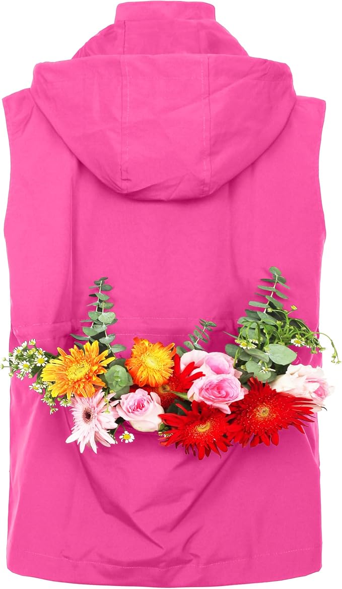 PESION Womens Packable Military Utility Vests Outerwear Waterproof Windbreaker Jacket Cargo Vest with Removable Hood