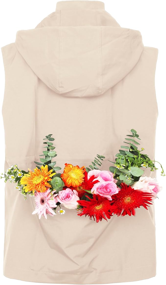 PESION Womens Packable Military Utility Vests Outerwear Waterproof Windbreaker Jacket Cargo Vest with Removable Hood