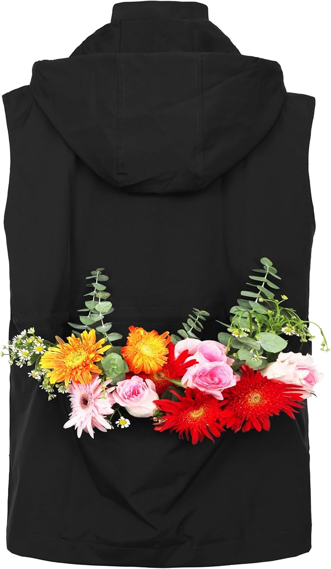 PESION Womens Packable Military Utility Vests Outerwear Waterproof Windbreaker Jacket Cargo Vest with Removable Hood