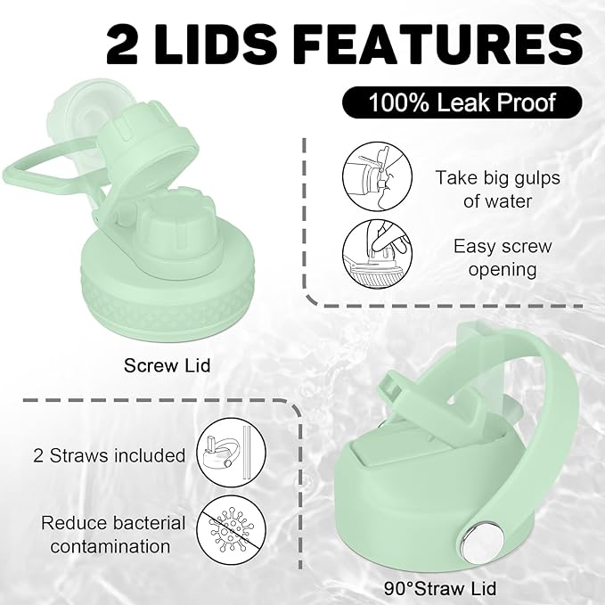 - 【2 LEAK-PROOF LIDS】ABOTOCUP 32 oz insulated water bottle provide a different drinking experience with two lids that are fully leak-proof and designed for effortless drinking. Water bottle stainless steel easy to use one-handed or hands-free drinking even when you're busy. Water bottle stainless steel perfect for all indoor and outdoor activities.