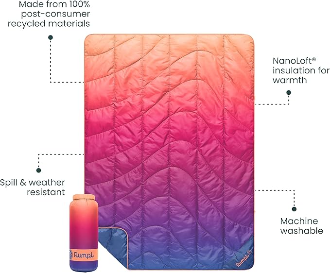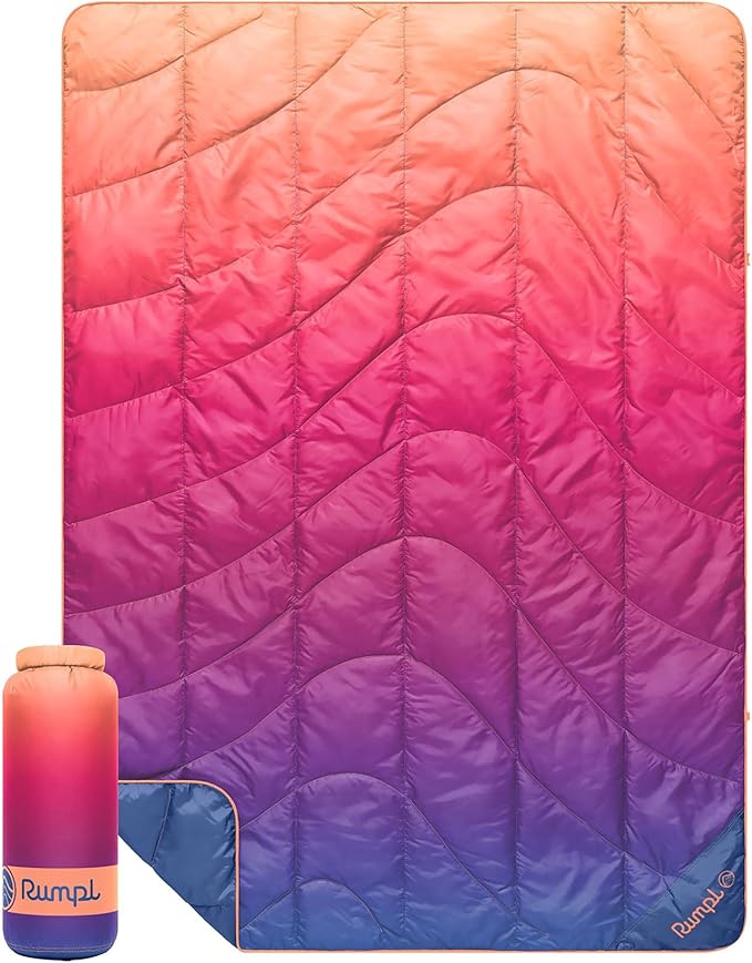 Rumpl Travel Puffy Blanket, Ultra-Packable Travel-Size Warmth and Comfort, Sunset Spectrum Fade