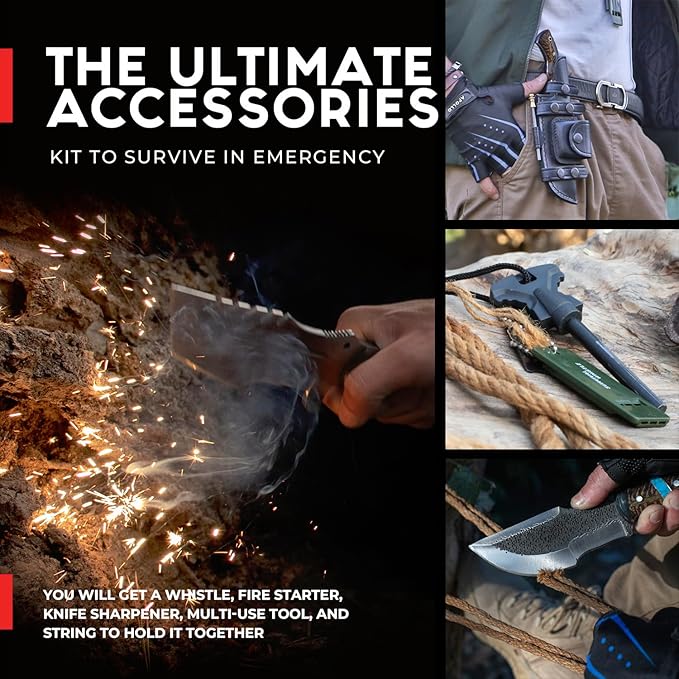 - Included Components : Fire Starter, Pure Leather Sheath, Sharpenning Rod