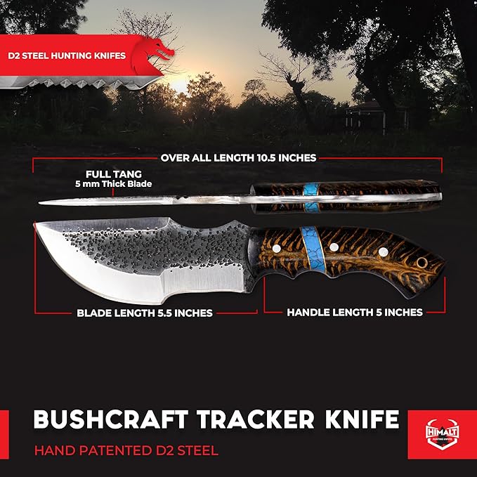 - Hand Forged Hunting Knife: Our D2 Blade is hand patented and is heat-treated and has a hardness of 58-60 HRC So Our hunting knives can take anything and everything i.e., camping, hiking, fishing, or any outdoor task.