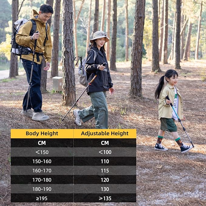 - 【Long-lasting construction】:Crafted from grade aluminum, the folding walking stick is robust and provides unparalleled stability and support for your outdoor activities. Perfect for both male and female hikers seeking reliable collapsible poles.