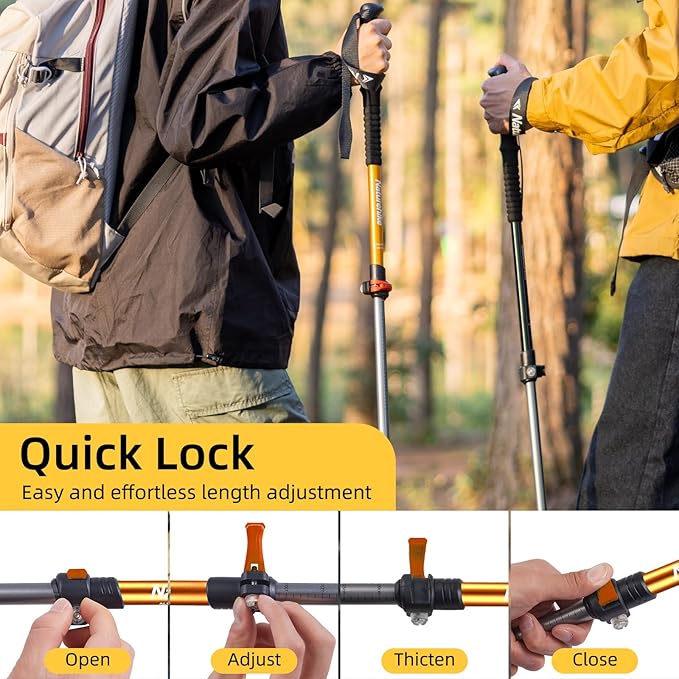 - 【Long-lasting construction】Crafted from grade aluminum, the folding walking stick is robust and provides unparalleled stability and support for your outdoor activities. Perfect for both male and female hikers seeking reliable collapsible poles.