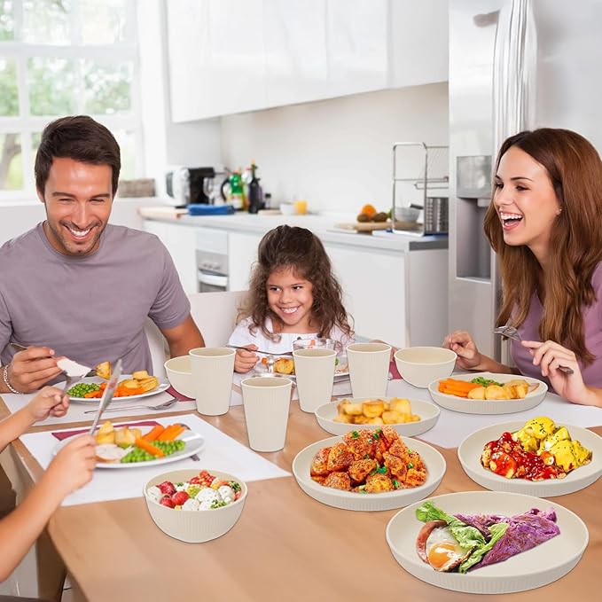 - Multi-Scene Use: The dinnerware sets are suitable for both indoor and outdoor use, perfect for picnics, camping, BBQs,work, school and everyday dining at home. With a modern, minimalist design, this wheat straw dinnerware set complements any kitchen decor.