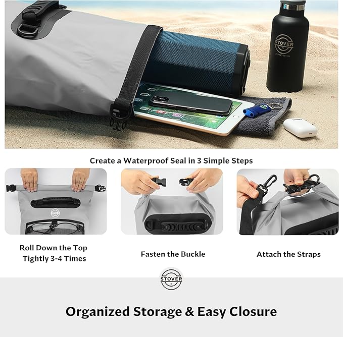 STOVER 5/10/25/30/40/55L Waterproof Backpack- Floating Dry Bag for Kayaking, Travel, Beach, Hiking, & Camping, Men/Women