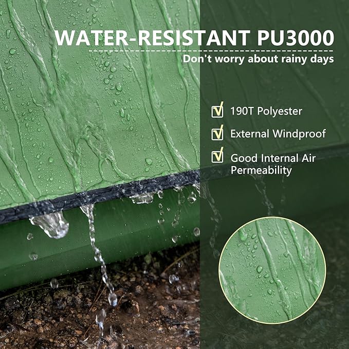 • 【Double-Layer Design】 Features a waterproof outer layer and a breathable full-mesh inner tent for superior ventilation and rain protection, plus two D-shaped doors for easy access—more convenient and weather-resistant than basic single-layer tents.