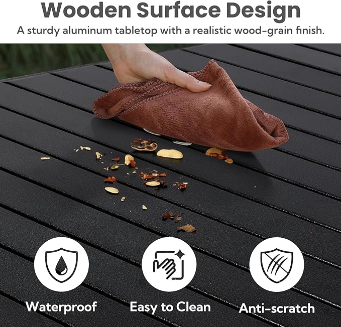 Portable Outdoor Camping Table Large for 2-6 Person - Foldable Camp Table with Aluminum Roll-Up Top & Carry Bag for BBQ, Tailgating, Backyard, 220 Lbs Capacity, Stable & Sturdy (Black)
