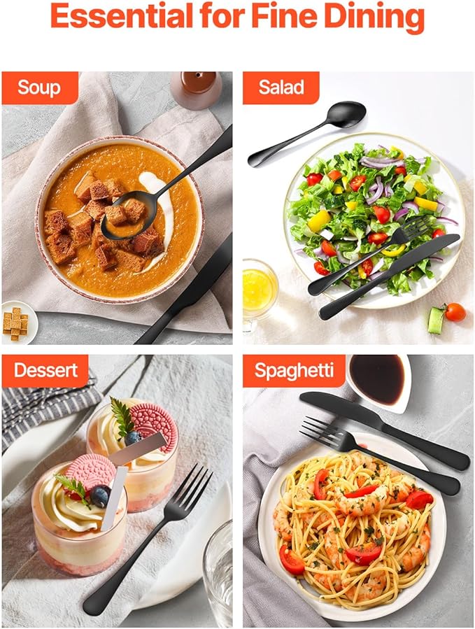 - High-Quality Stainless Steel: Made from premium 18/0 stainless steel, this tableware cutlery set is durable, corrosion-resistant, and rust-proof with excellent balance. The smooth-edged design ensures comfort during use. Dishwasher safe and perfectly weighted, it is designed for long-lasting use